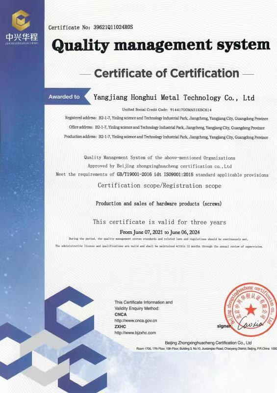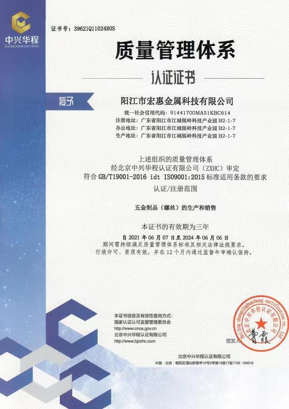 廣東宏惠金屬公司是家20多年一直專注鉆尾螺絲開發(fā)與生產(chǎn)的企業(yè),是國內(nèi)較早做鉆尾的廠家之一,同時也是國內(nèi)專業(yè)開發(fā)生產(chǎn)鉆尾螺絲的企業(yè)之一。 我司地址為于廣東省陽江市江銀嶺科技園距沈海高速白沙出口不到2公里,距陽江高鐵站也只有十余公里交通便利。 公司占地120畝,擁有超500臺套專業(yè)設(shè)計 生產(chǎn) 檢測設(shè)備。一個超200人的專業(yè)團隊,能夠嚴格按照ISO9001質(zhì)量體系要求生產(chǎn)符合GB DIN AS3566 ANSI JIS BS等標準的產(chǎn)品,生產(chǎn)銷售各種高品質(zhì)緊固件系列產(chǎn)品,為中高端客戶提供優(yōu)質(zhì)服務(wù)。也可按照客戶要求設(shè)計生產(chǎn)各種鉆尾,年產(chǎn)高品質(zhì)碳鋼 不銹鋼鉆尾螺絲2萬余噸.在各大客戶的鼎力支持下產(chǎn)品暢銷全國,并遠銷亞 非 拉 歐等地,在這20多年發(fā)展的道路上我司堅持“以質(zhì)量求生存,以信譽求發(fā)展”的精神理念不斷完善公司體系。